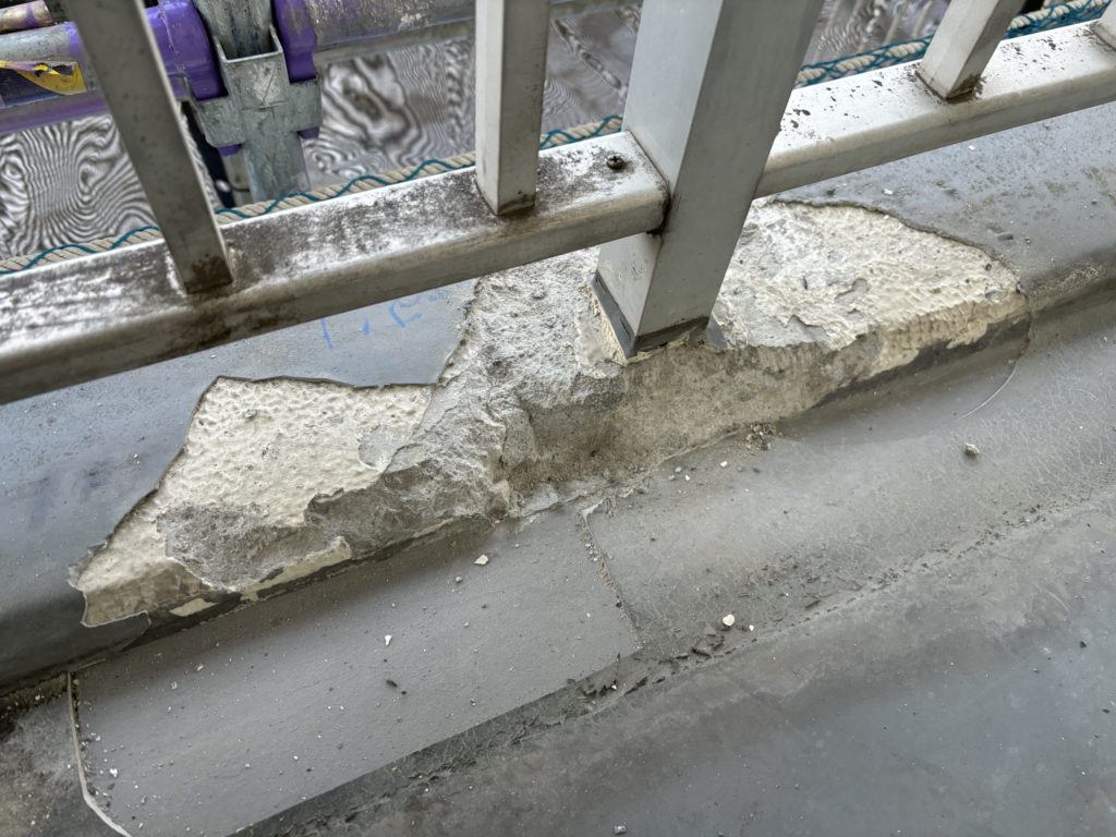 修繕工事では脆弱部分を取り除きコンクリートで埋め戻し整形します。